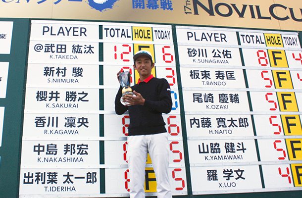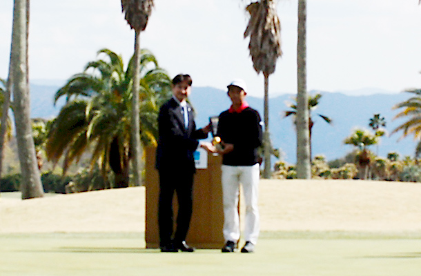 地元アマチュア高校生の快挙に徳島が沸いた!生光学園高校3年の武田紘汰選手が並みいるプロを抑えて3日間通算12アンダーで見事な逆転優勝。17歳3ヶ月6日での優勝は同ツアー最年少新記録の樹立となり、栄冠に花を添える結果となった。 JクラシックG.Cは同校が練習や合宿の拠点とするホームコース。隅々まで熟知した地の利を活かし、最終日はノーボギーの66で6つスコアを伸ばす猛チャージ。最終18番は複雑なグリーンアンジュレーションを見事に読み切り長いバーディーパットをねじ込んで勝利を決めた。